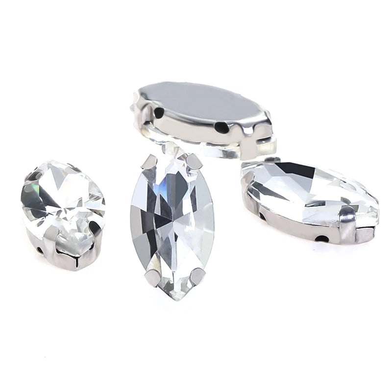 50pcs Crystal Glass Navette Fancy Stones Mix Color with Setting