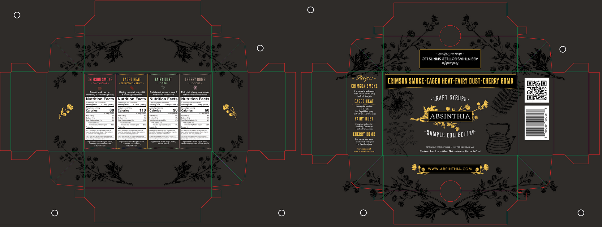 2 oz bottles of each of our syrups in a gorgeous box with recipes! (Enough for 8 cocktails or mocktails)